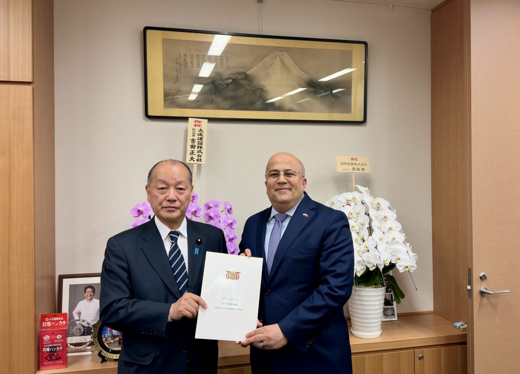 The Ambassador of Yemen to Japan, Adel bin Ali Alsunaini, met with Japanese Parliament member and Head of the Foreign Affairs Committee, Takagi Kei.