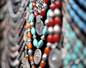 Includes necklaces, earrings, bracelets, and anklets made of silver or gold, reflecting a woman’s social status.