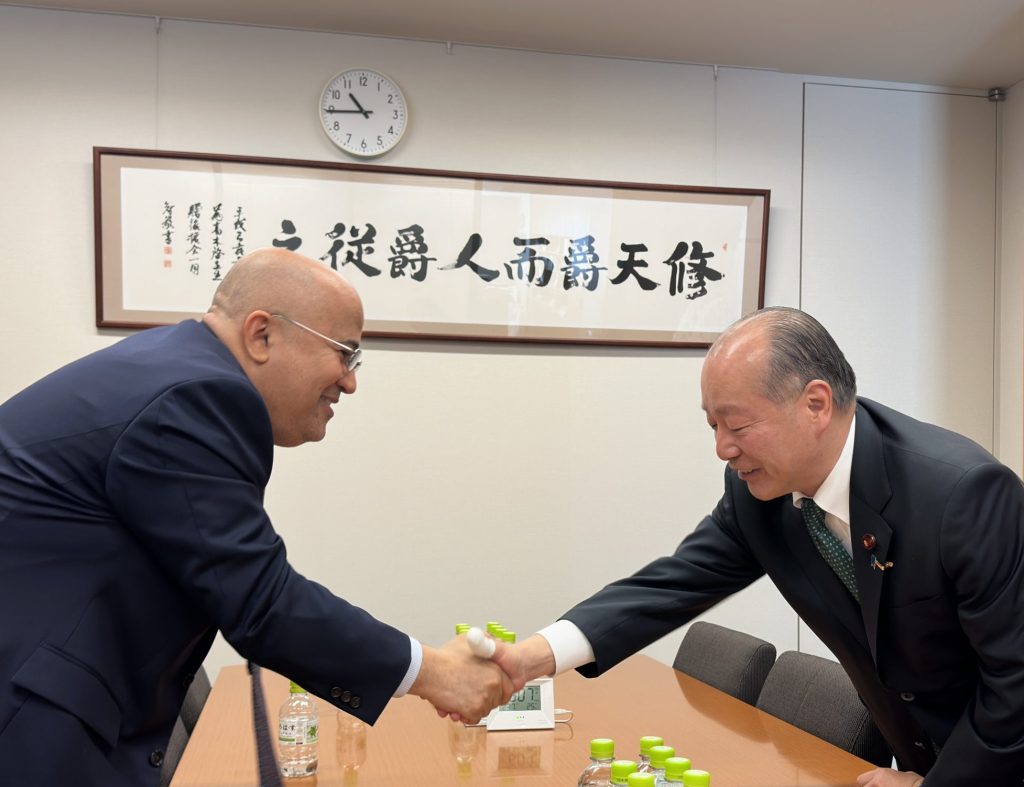 Yemen’s Ambassador to Japan, Adel bin Ali Alsunaini , met with Japanese Member of Parliament, Takagi Kei, to discuss ways to strengthen bilateral relations and areas of joint cooperation. During the meeting, Ambassador Al-Sunaini praised the advanced level of relations and the Japanese government’s firm commitment to supporting the Presidential Leadership Council and the government, as well as Yemen’s security, stability, and unity. He also commended Japan’s efforts to achieve peace and its support for the Yemeni people, emphasizing Yemen’s keenness to consolidate bilateral relations and enhance cooperation in various fields.