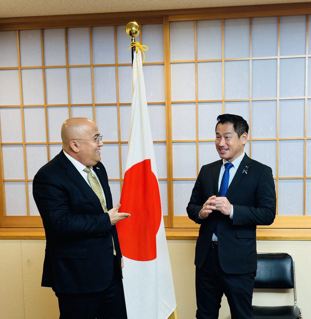 Yemen’s Ambassador to Japan, Adel bin Ali Alsunaini, met with Japanese Deputy Foreign Minister, Yohei Onishi, to discuss the progress made in bilateral relations between the two friendly countries and to intensify efforts to strengthen them in all fields. The meeting addressed issues of mutual interest, including developments in Yemen, current challenges, and the importance of securing international shipping lanes in the Red Sea and the Gulf of Aden.
